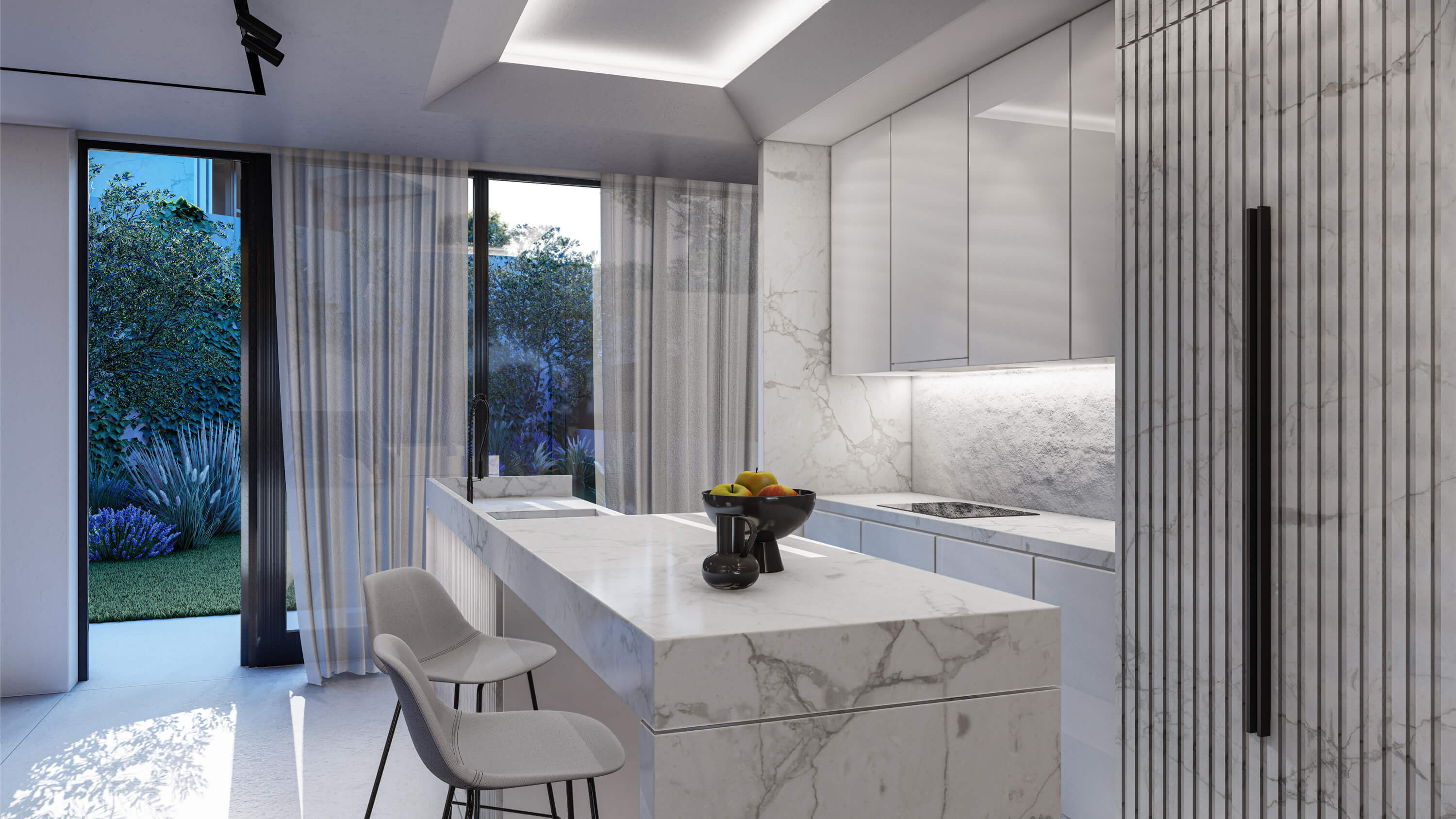 A steel frame system (SFS) has been used to assemble the frame of the buildings’ structure, significantly reducing the carbon footprint of the construction phase, compared to traditional building methods based on concrete. The integration of smart home and building control, through KNX technology, along with the installation of under-floor heating, ceiling concealed fan coil units and in-roof solar panels, enables the end user to adopt an efficient use of energy. Combined with triple-glazed windows that offer superior thermal insulation, we are looking at a holistic approach towards high energy performance and self-sufficiency, keeping energy costs low. All other construction materials and interior details meet the latest sustainability criteria under current legislation.