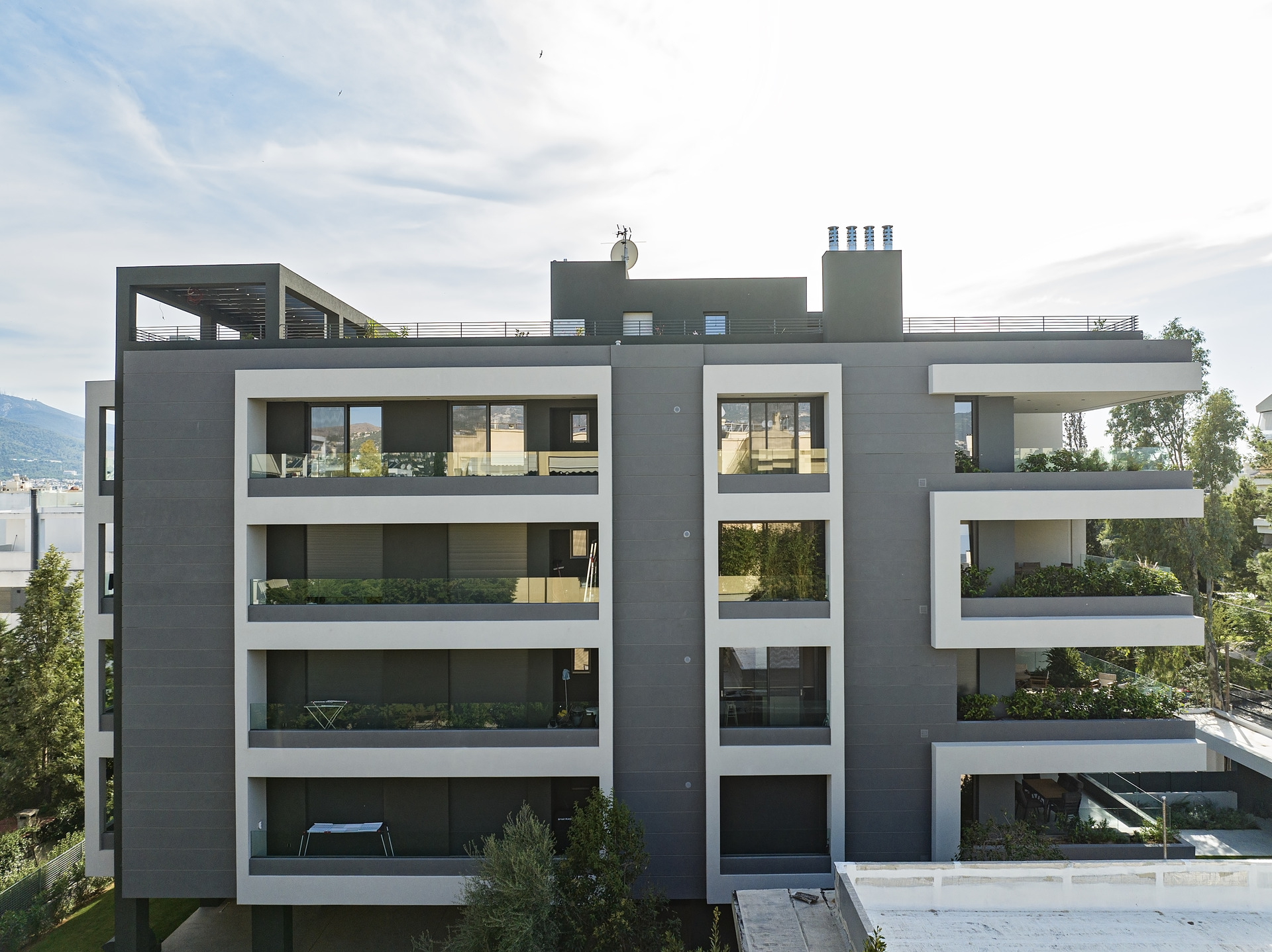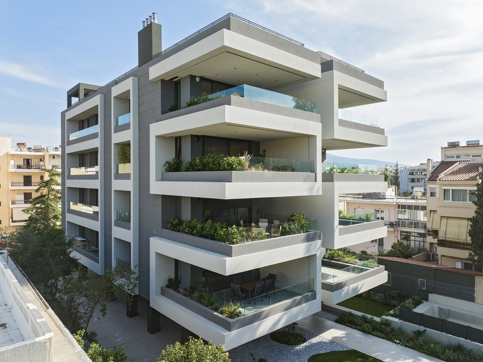 The former brownfield site was transformed into a residential building comprising 8 spacious high-end apartments, designed by Moustroufis Architects, one of Greece's leading architectural practises.